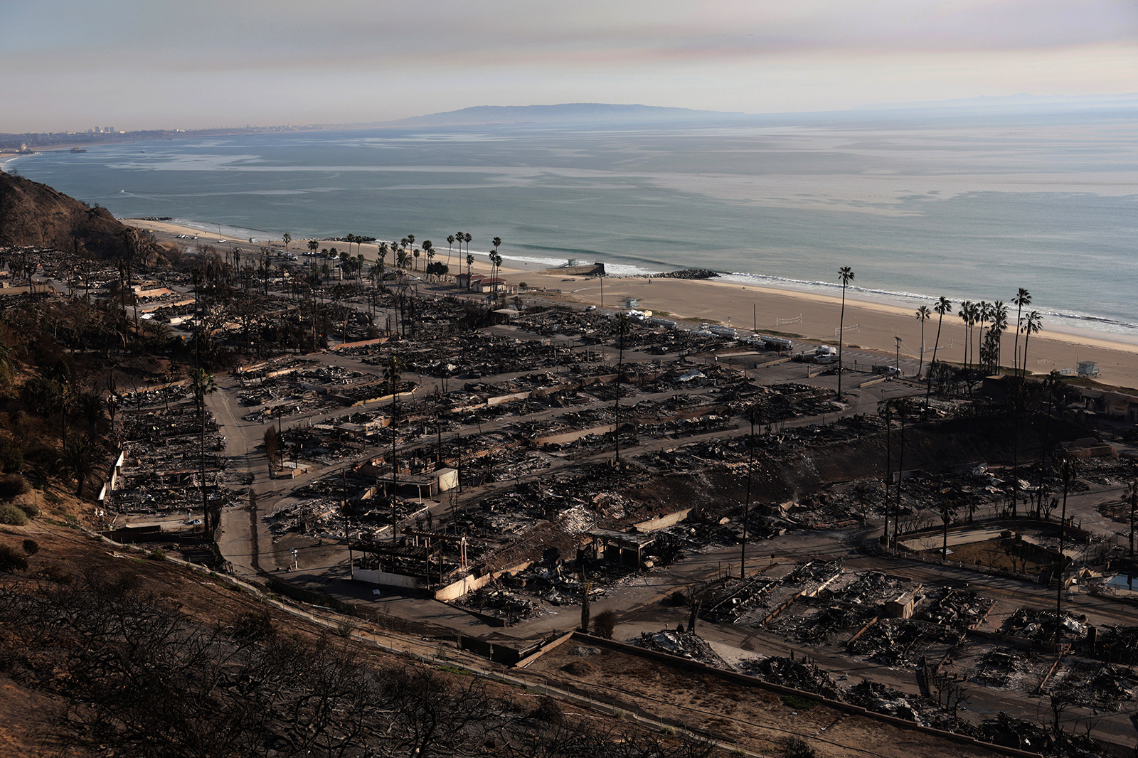 The Palisades and Eaton fires were highly destructive wildfires that began burning on January 7, 2025, and lasted 24 days. The fires killed 30 people, burned over 37,000 acres, and destroyed over 15,000 structures. During this time the Southern California coast had experienced eight months without any measurable rainfall, and much of the region had fallen into moderate drought conditions. That combined with a life-threatening windstorm of Santa Ana winds created an out of control situation for fire fighters. Scientists have stated that human-caused warming is generally making fires in California and the rest of the West larger and more severe.